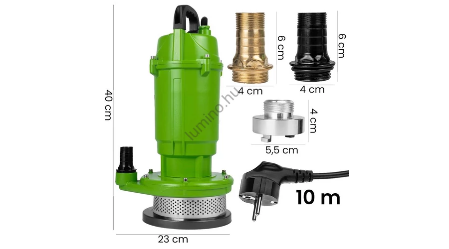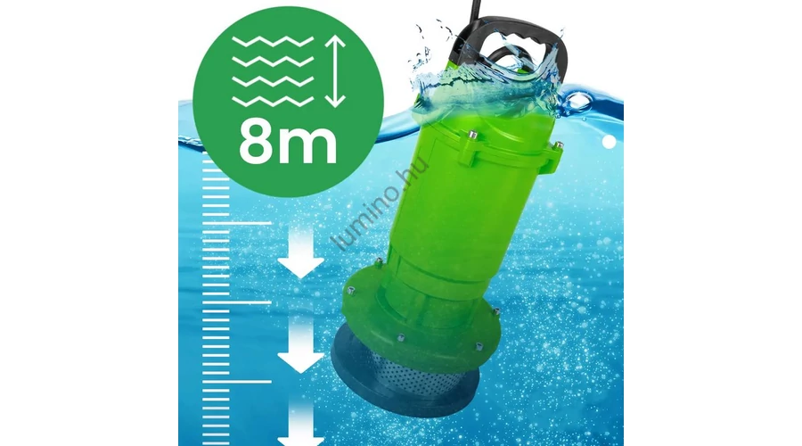 Merülő szennyvíz és esővízszivattyú - 12000 l/óra, 550W, 10 m tápkábel, IPX8 Az 550W merülőszivattyú ideális választás szennyezett vagy tiszta víz gyors és hatékony eltávolítására. Legyen szó elárasztott helyiségekről, vízzel telt tartályokról, esővízgyűjtőkről vagy építési gödrökről, ez a strapabíró és megbízható szivattyú kiváló megoldást kínál. A készülék 12000 liter/óra teljesítményre képes, és akár 8 méter mélyen is működtethető. A maximális emelési magasság 22 méter, így ideális nagyobb térfogatú víz áthelyezéséhez is. Az olajfürdős indukciós motor biztosítja a csendes működést és a hosszabb élettartamot. A szivattyú 1"-os csatlakozással, valamint tűzoltótömlő-adapterrel is rendelkezik, így a telepítése gyors és rugalmas. A teljesen tömített motorház (IPX8) megakadályozza a víz bejutását, így a készülék biztonságosan működik víz alatt is. A 10 méter hosszú tápkábel lehetővé teszi a kényelmes használatot nehezen hozzáférhető helyeken is. Alkalmas 5–35°C hőmérsékletű vízhez, szilárd szennyeződésektől nem túl terhelt folyadékokhoz. |