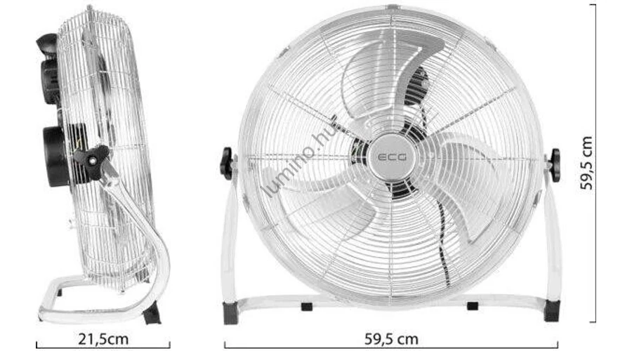 Padlóventilátor 100W nemesacél kivitelben 45 cm átmérő, 3 fokozat, csendes,