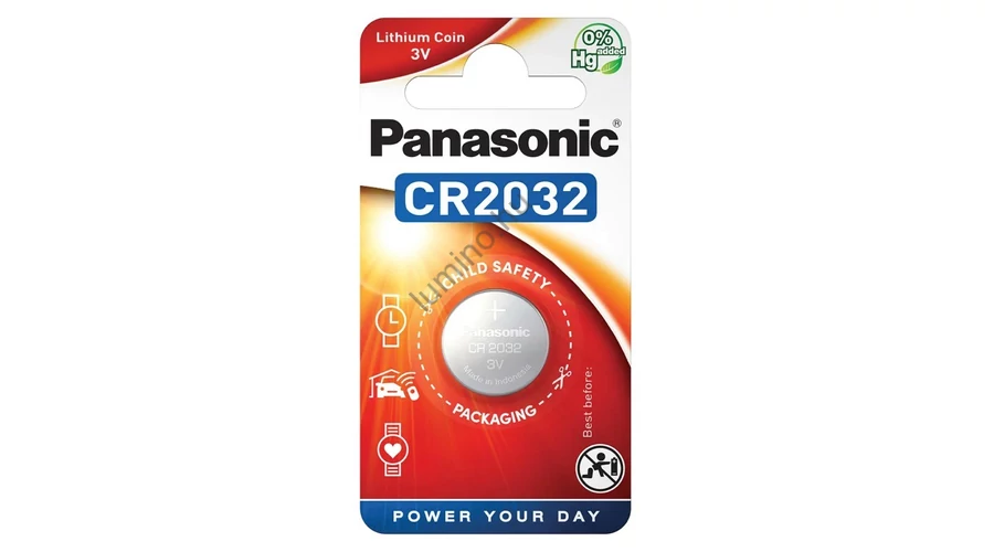 Panasonic CR2032 Lithium elem – 3.0V, 225mAh B1, hosszú lejárati idő A Panasonic CR2032 mini lithium gombelem megbízható energiaforrás kis fogyasztású elektronikai eszközökhöz, mint például órák, számológépek, távirányítók, mérlegek vagy orvosi műszerek. A 3.0 voltos feszültség és 225mAh kapacitás hosszú élettartamot biztosít.
