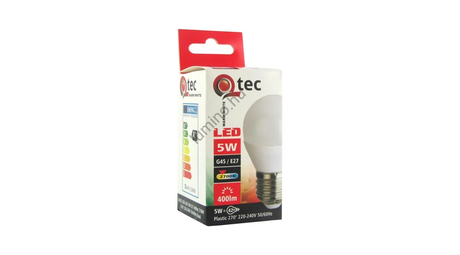 QTEC LED izzó 5W E27 G45 kisgömb fényforrás 2700K