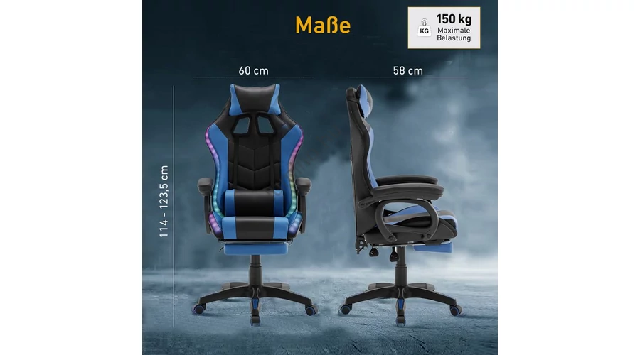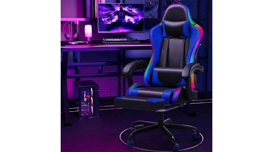 Emeld új szintre a játékélményt ezzel a látványos, kék-fekete RGB LED-es gamer székkel!